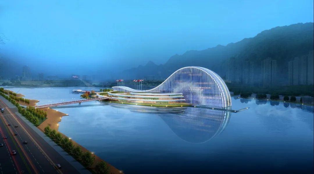 建筑、島嶼、橋梁空間互通,有機共融,打造地標性島嶼建筑,助力構(gòu)建天沐河旅游休閑帶。