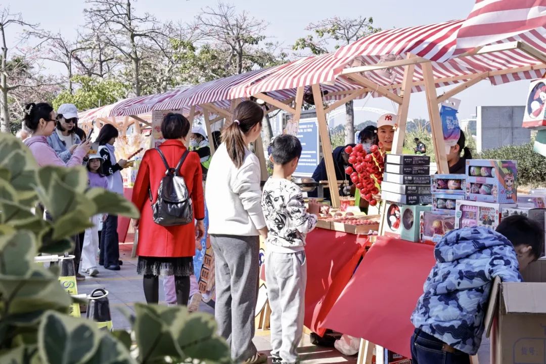 除此之外,每逢周末,一號、二號和三號驛站開展東灣墟市活動,斗門蓮洲鎮(zhèn)東灣村農(nóng)產(chǎn)品市集走進(jìn)花海,帶來優(yōu)質(zhì)的本地產(chǎn)綠色農(nóng)產(chǎn)品、特色手工糖水和農(nóng)副產(chǎn)品、非遺點(diǎn)心小吃等,吸引了大批市民游客上前詢問和購買。游客在享受美景、體驗美食之旅的同時,亦促進(jìn)了鄉(xiāng)村振興與滿足城鎮(zhèn)消費(fèi)需求的良性循環(huán),鄉(xiāng)村市集在花海煥發(fā)出了新活力。