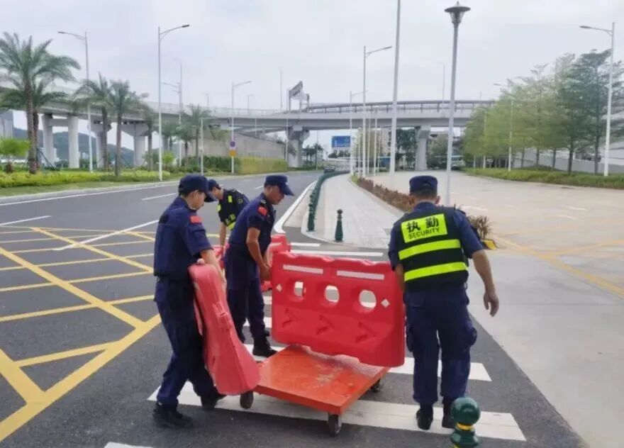 在橫琴口岸區(qū)域,提前排查200多個集水井,調(diào)集230個緊固件加固門窗,近3000條沙袋、近100個防洪擋板、11臺水泵等應(yīng)對福臨道、地庫36處接駁口、負(fù)二層下沉庭院、U行車道等重點區(qū)域強(qiáng)排和封堵需要。同時對通關(guān)區(qū)域的100余扇玻璃門進(jìn)行加固,在易水浸區(qū)域放置沙袋、擋板。同時,全面清理雨水井、排水溝渠,確保排水暢通。